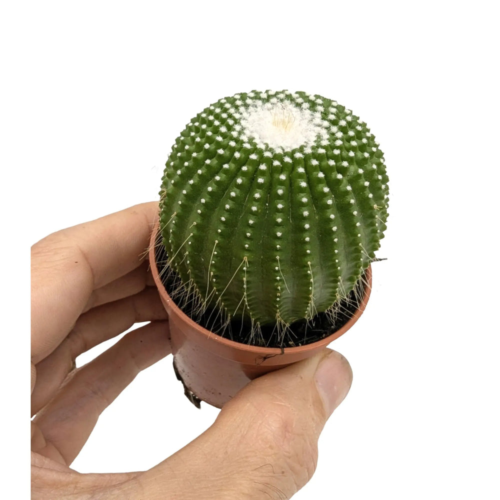 This cactus loves bright light and can handle full sun once acclimatised. It prefers well-draining soil and minimal watering—let it dry completely between waterings, especially in winter. In summer, mature plants may even reward you with small yellow flowers that appear near the top of the stem. Easy to care for and visually striking, the Golden Ball Cactus brings a cheerful, sunlit charm to any collection.